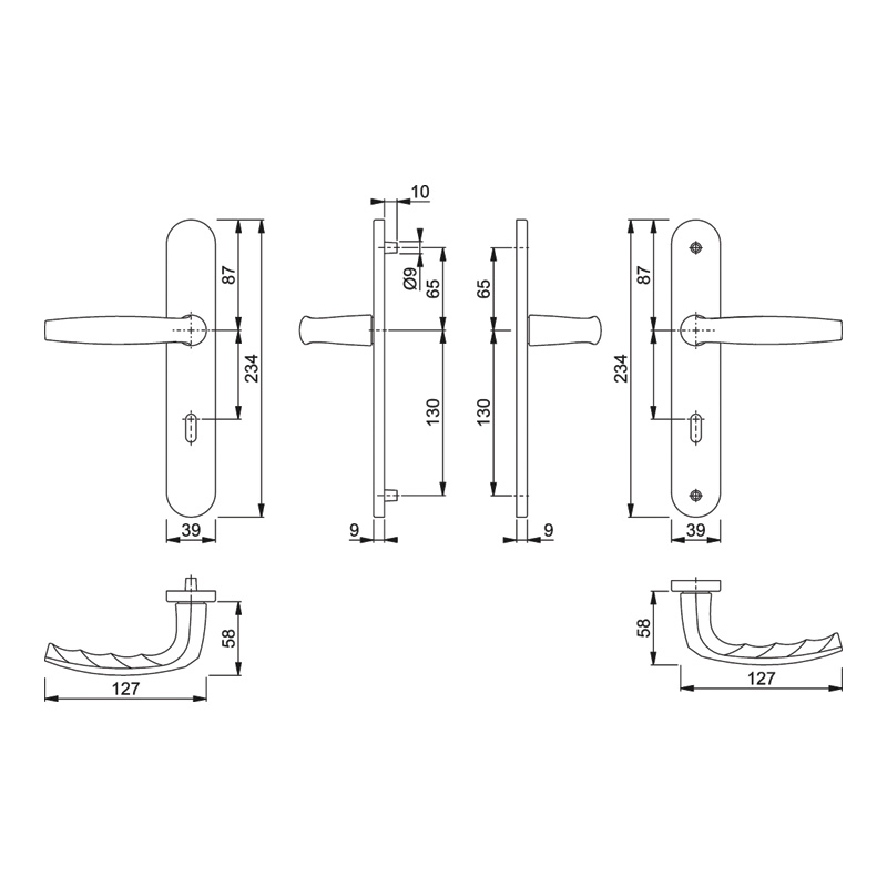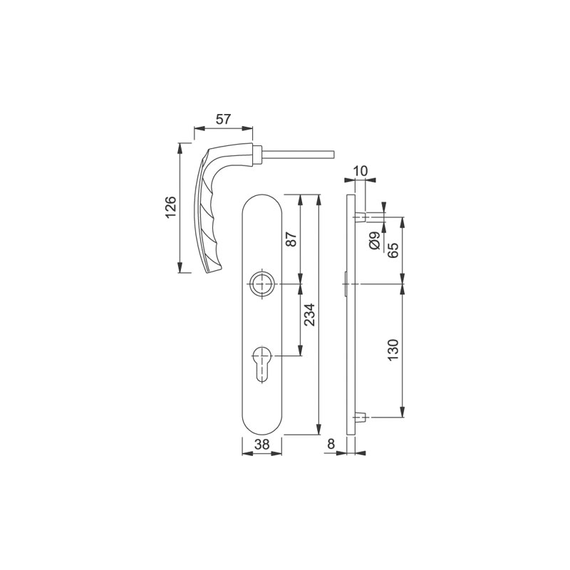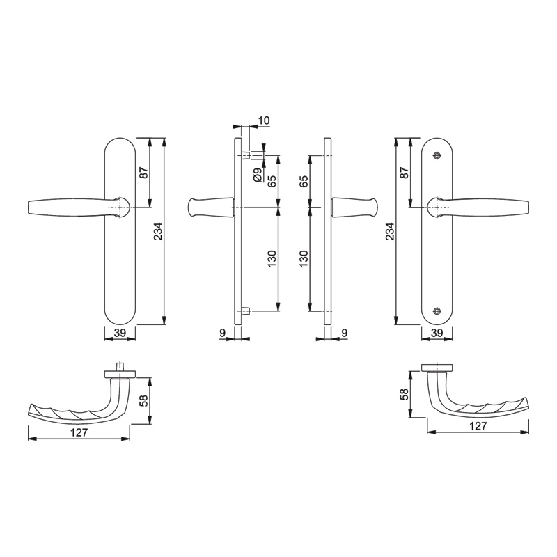 Cet ensemble monobloc à béquille double se fixe sur plaques fondues 234 x 38 mm. L'ensemble est livré avec carré de 7.