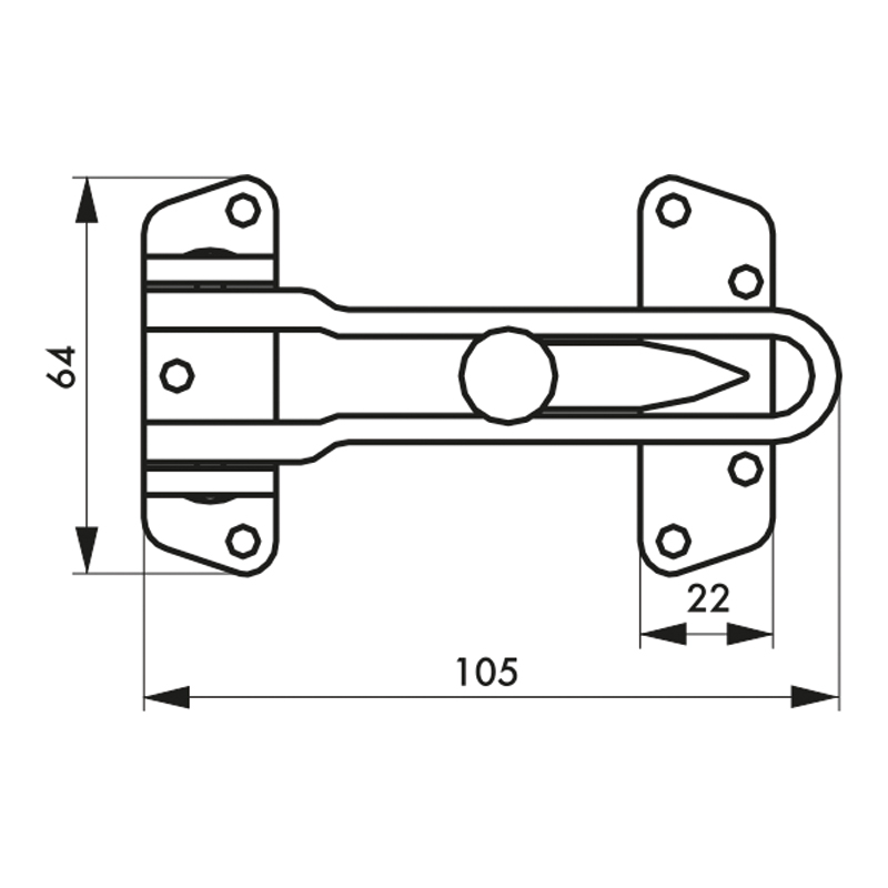 Platine et gâche hauteur 64mm x largeur 22mm.