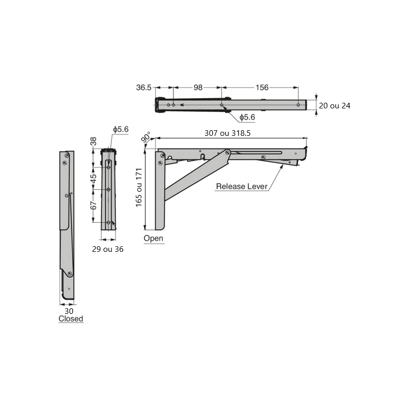 Equerre pliante amorti pour étagère de marque SUGATSUNE