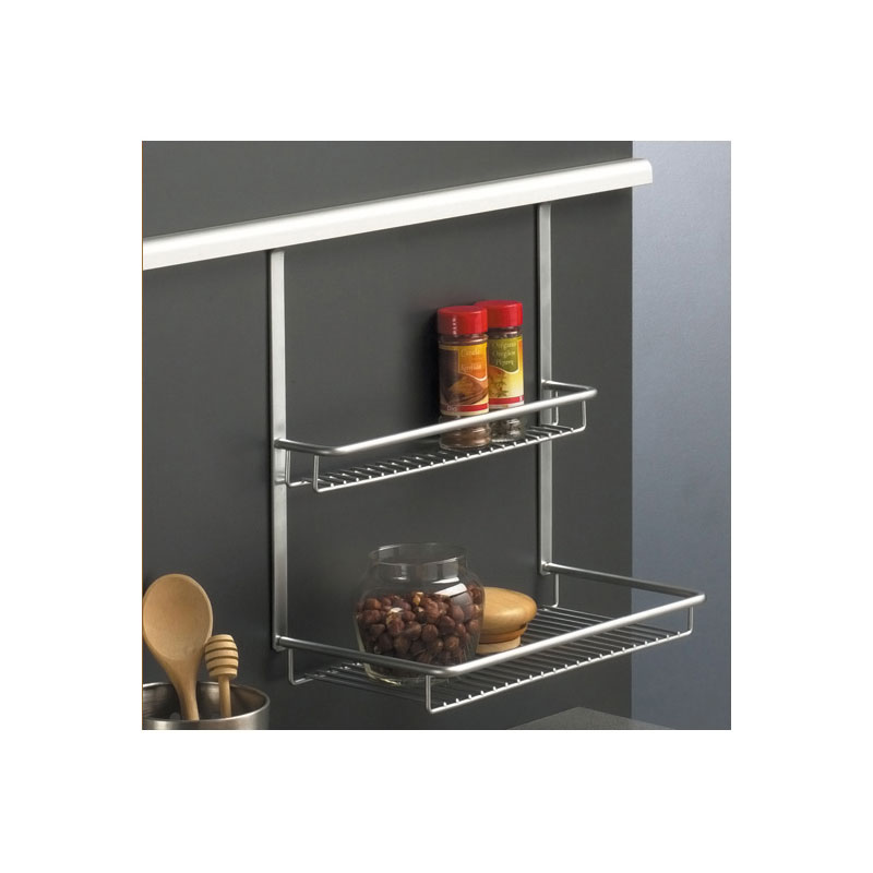 Etagère en aluminium idéal pour poser des pots à épices sur l'étagère du dessus et des pots en verre en dessous.