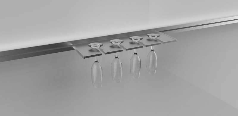 Etagère conçue pour suspendre 4 verres au niveau de la crédence de votre cuisine. Cette étagère porte verres est compatible avec la crédence AURA. Son design soigné et fin apportera une touche de modernité à votre cuisine !