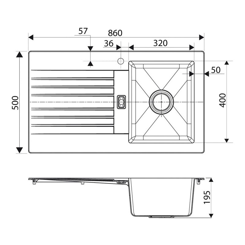- Livré avec fixations, siphon et bonde inox Ø90 mm