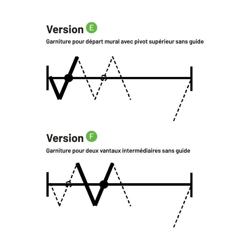 Garnitures partielles sans charnière ni rail.