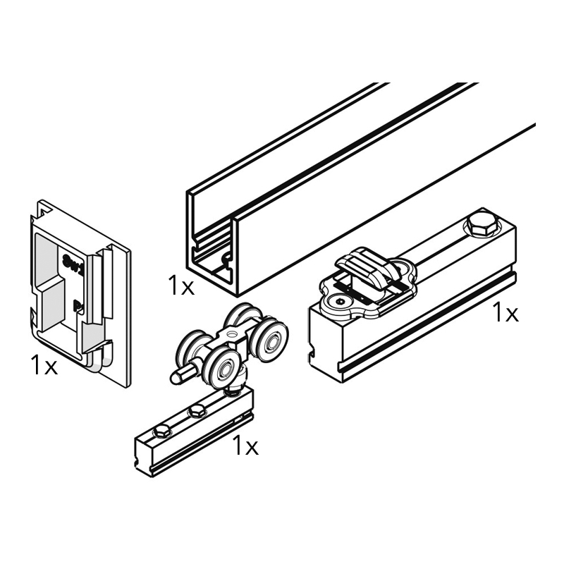 Ferrures pour grandes parois pliantes en bois jusqu'à un poids de 80 kg par vantail.