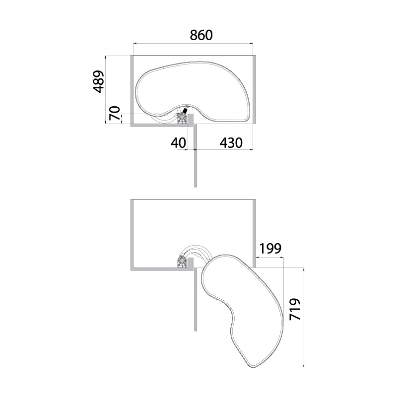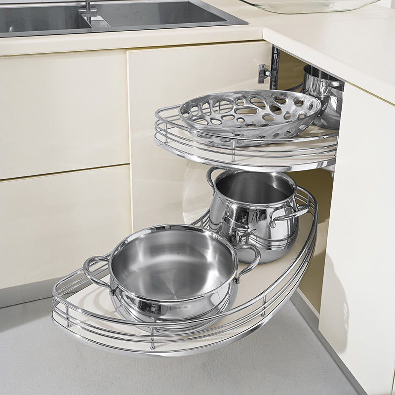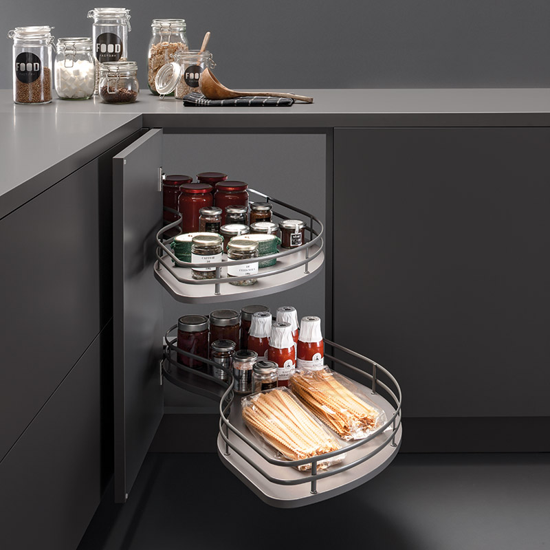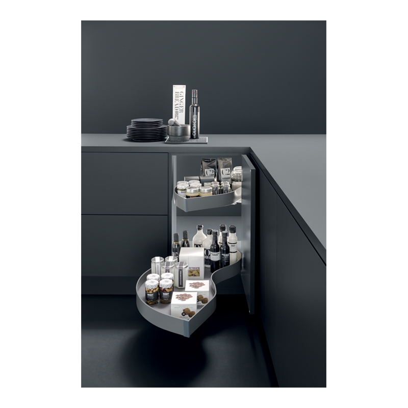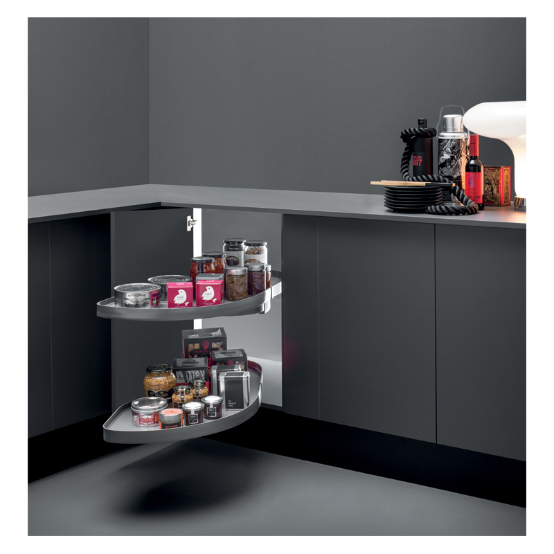 La ferrure d'angle Fly Moon est un ensemble escamotable équipé de plateaux pivotants et extractibles.