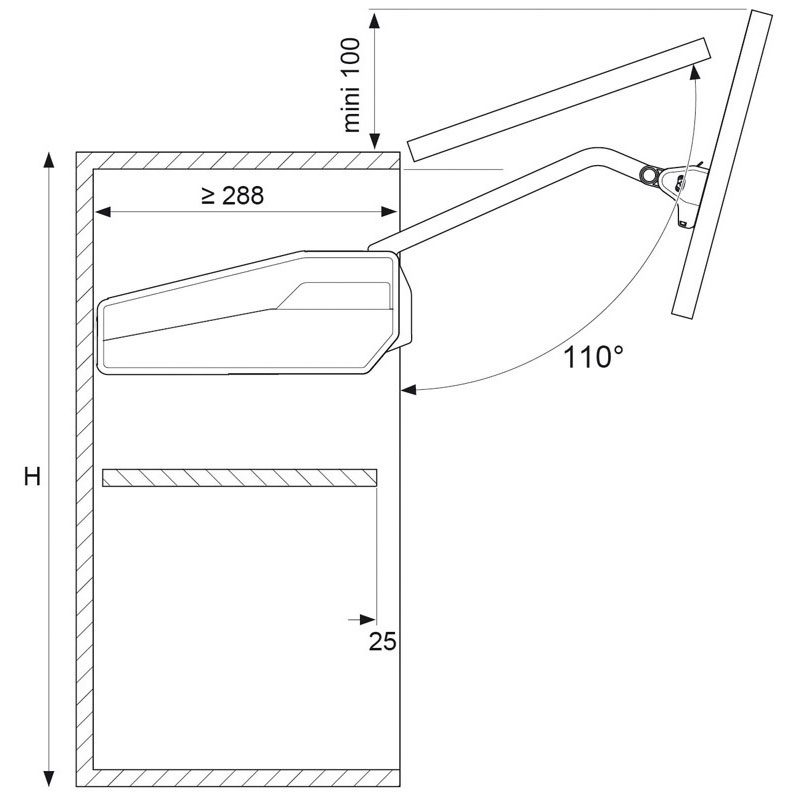 - Pour caissons hauteur de 480 à 910 mm, profondeur mini 288 mm