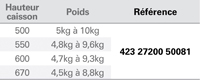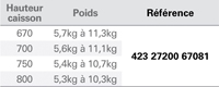 | Référence | Pour caisson de hauteur | Dispo. | Prix TTC | UV | Unité de Vente | Qté | |