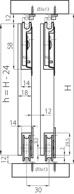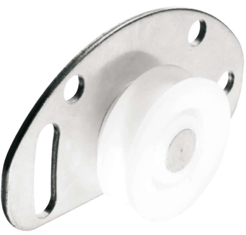 Guides et roulements avec platine en acier zingué pose en applique ou encastrée largeur 35, profondeur 14.