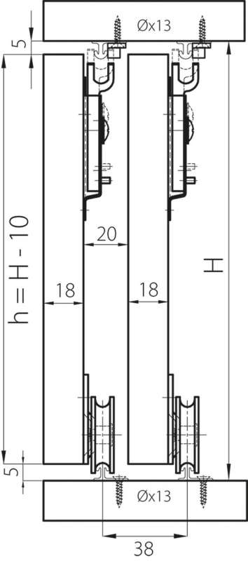 Comprenant la garniture pour 2 vantaux et jeu de rails haut et bas.