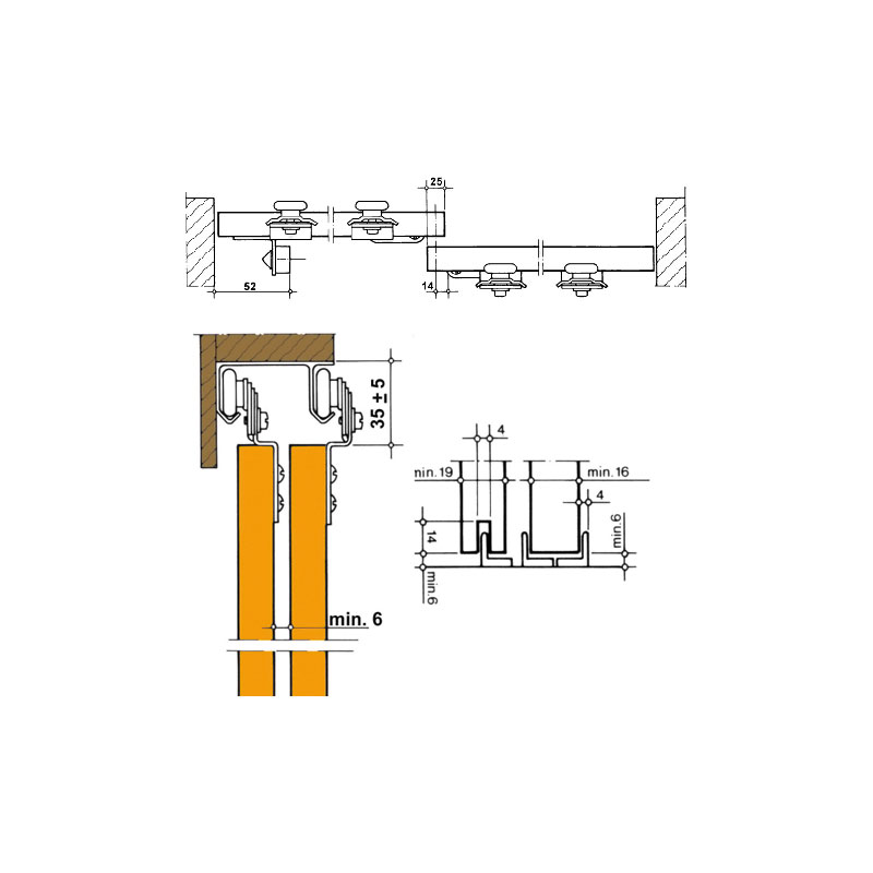 Ferrure coulissante pour portes de placard double.