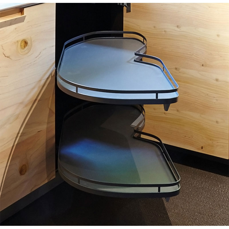 - Composée de 2 plateaux indépendants pivotants et sortant intégralement du meuble facilitant l'accès complet au contenu des plateaux