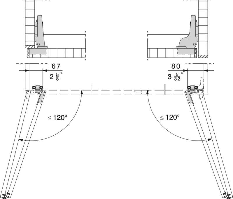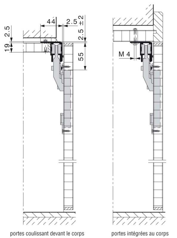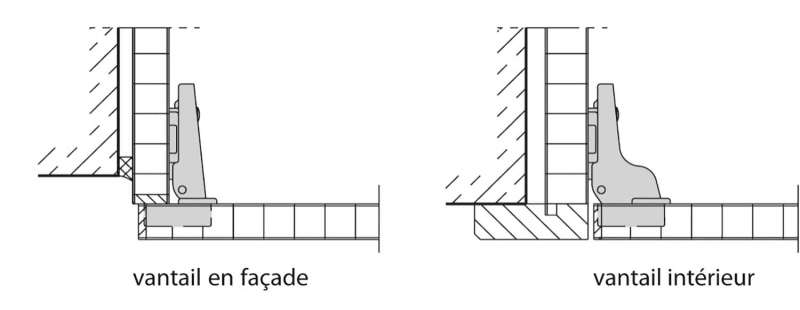 Le vantail latéral pivote sur charnières invisible 110° (non fournies).
