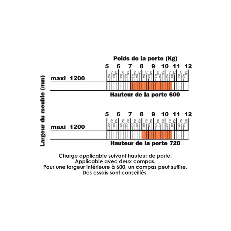Pour d'autres dimensions et poids de vantail faire des essais.
