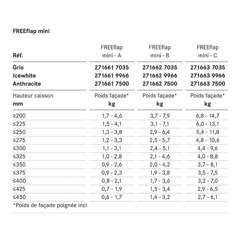 FERRURE RELEVAGE VERTICAL FREEflap mini de marque KESSEBOHMER