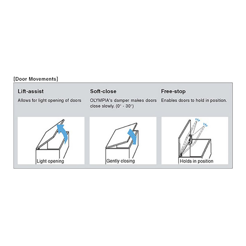 Il est spécialement conçu pour être utilisé avec la charnière OLYMPIA (fournit).
