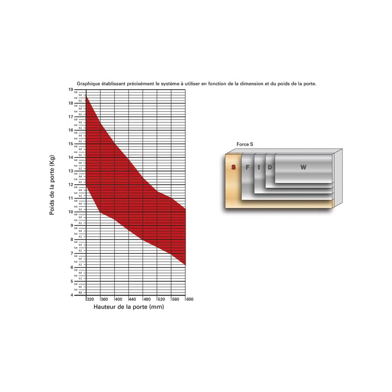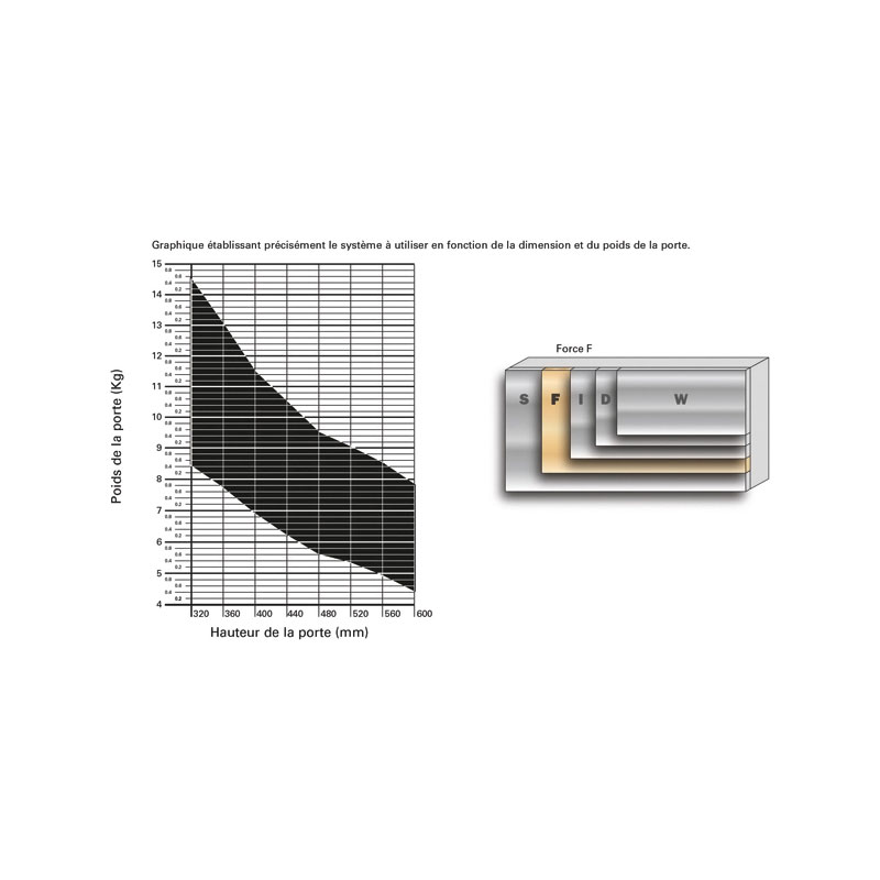 5 forces de ressorts en fonction du poids et de la hauteur de la porte.