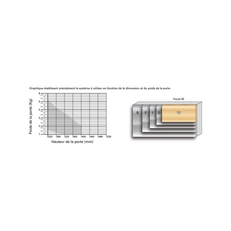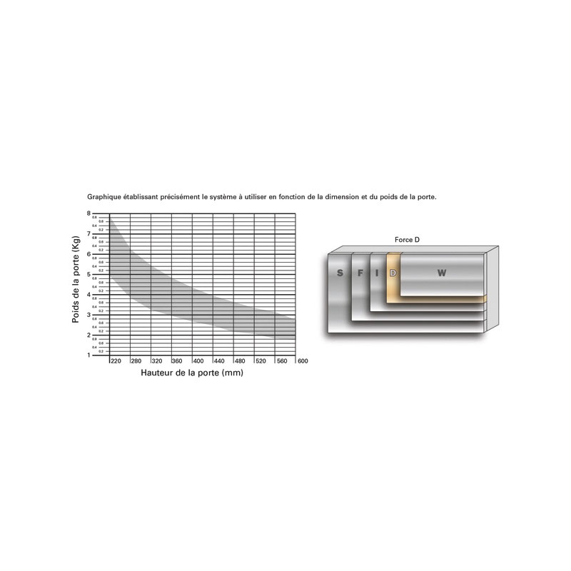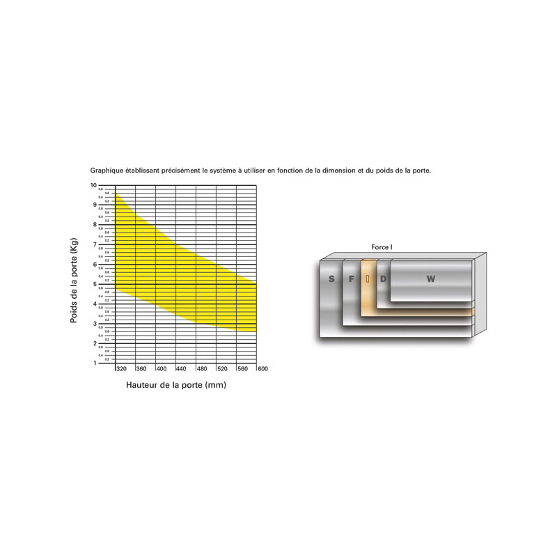 5 forces de ressorts en fonction du poids et de la hauteur de la porte.