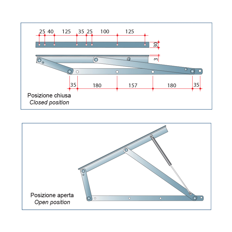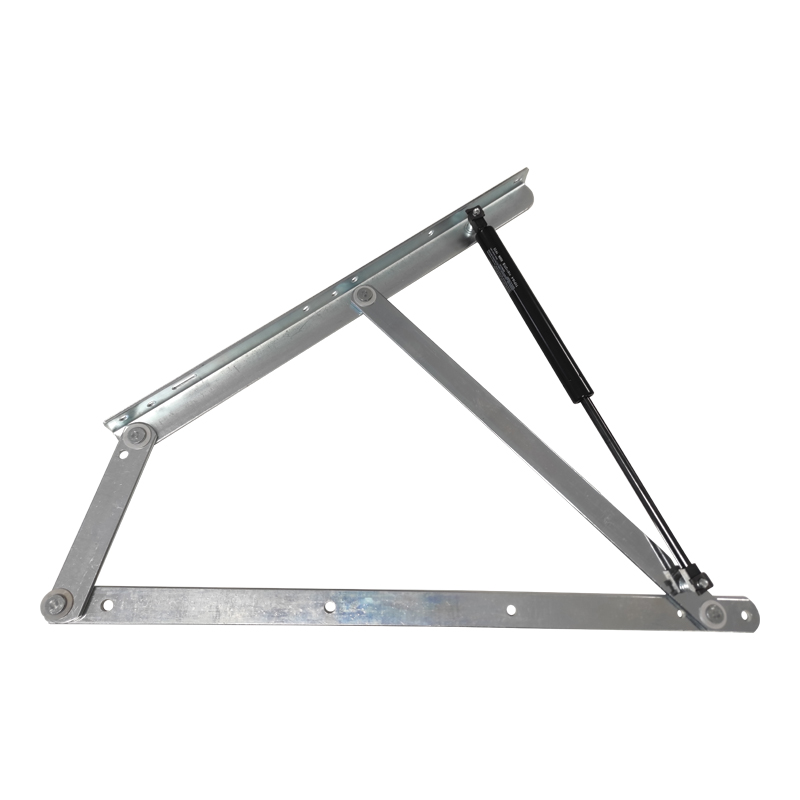 Utilisé avec deux vérins à gaz, ce mécanisme permet de soulever facilement le sommier et le matelas, et ainsi d'accéder à l'espace de rangement dans un lit coffre.