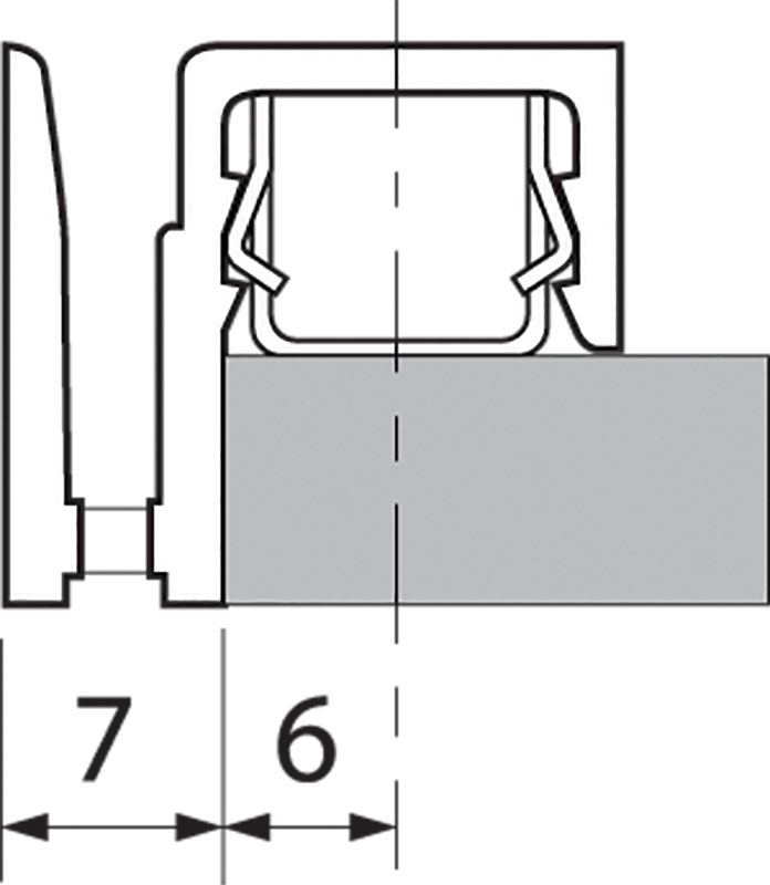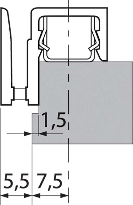 Le gabarit d'axe 6 permet le placage du chant contre la crémaillère ou le liseré du profil.