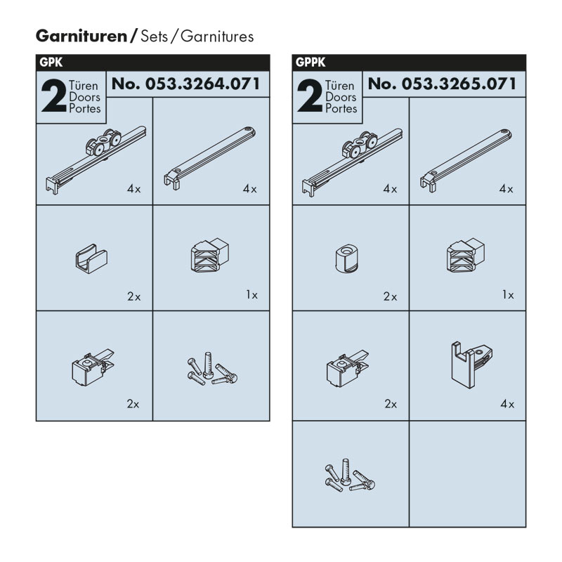 Garniture complète GPK/GPPK pour 2 vantaux 30747 30747 HAWA