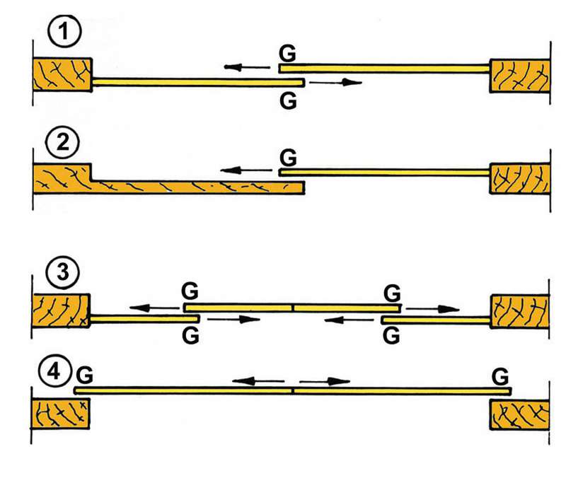 Dans les exemples 3 et 4, il est nécessaire de placer la butée au point de jonction des portes