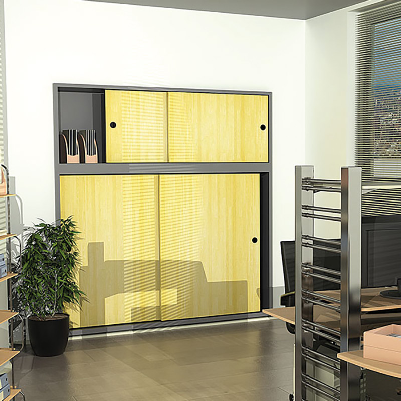 Ferrure pour porte légère jusqu'à 6 kg par vantail à déplacement droit sur profil aluminium.