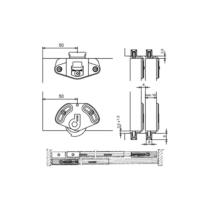 - Glissement silencieux très doux. épaisseur minimale d’un vantail 16mm