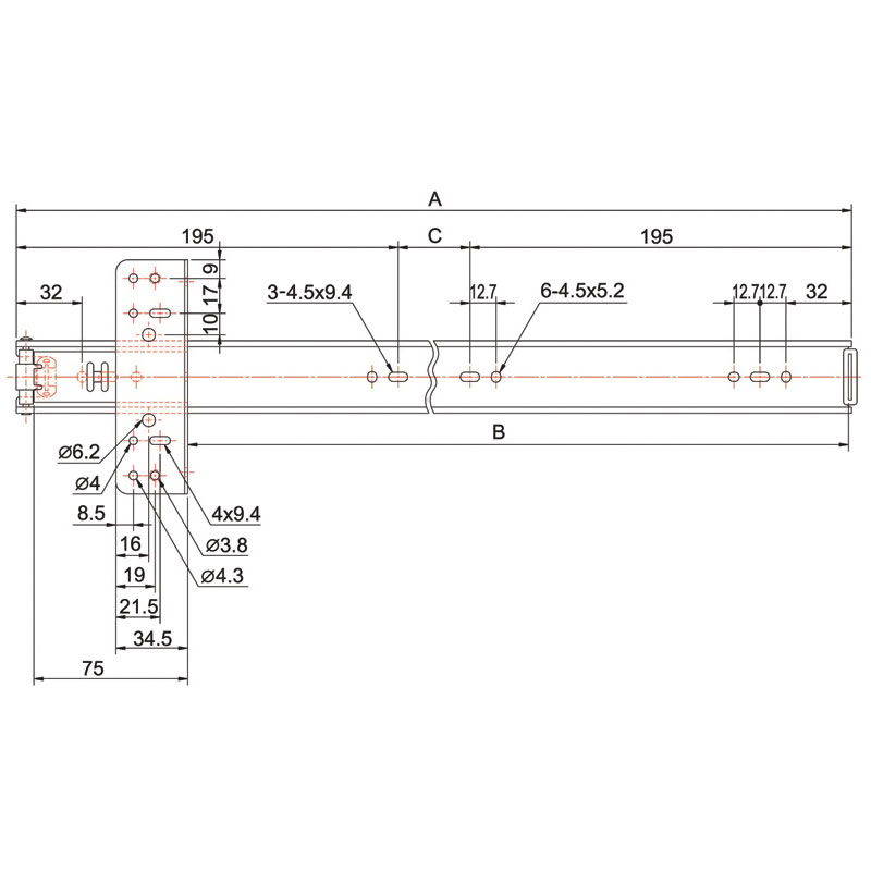 Coulisses à billes - Pour portes escamotables - Sortie totale - 15 kg 10958 10958 TCASYSTEM
