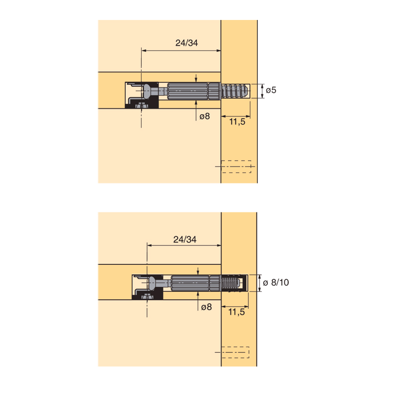 - Douille Ø8 plastique et d’une tige acier nickelé