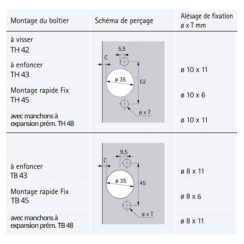 - Épaisseur porte mini : 14 mm
