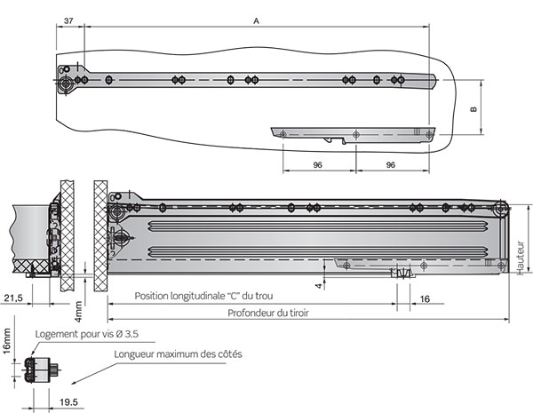 Amortisseur pour tiroir simple paroi de marque INDAUX
