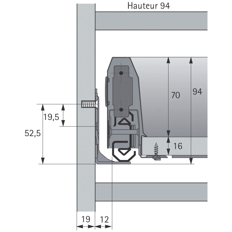 Tiroir coulissant en kit - Hauteur 94 mm - ArciTech 31232 31232 HETTICH
