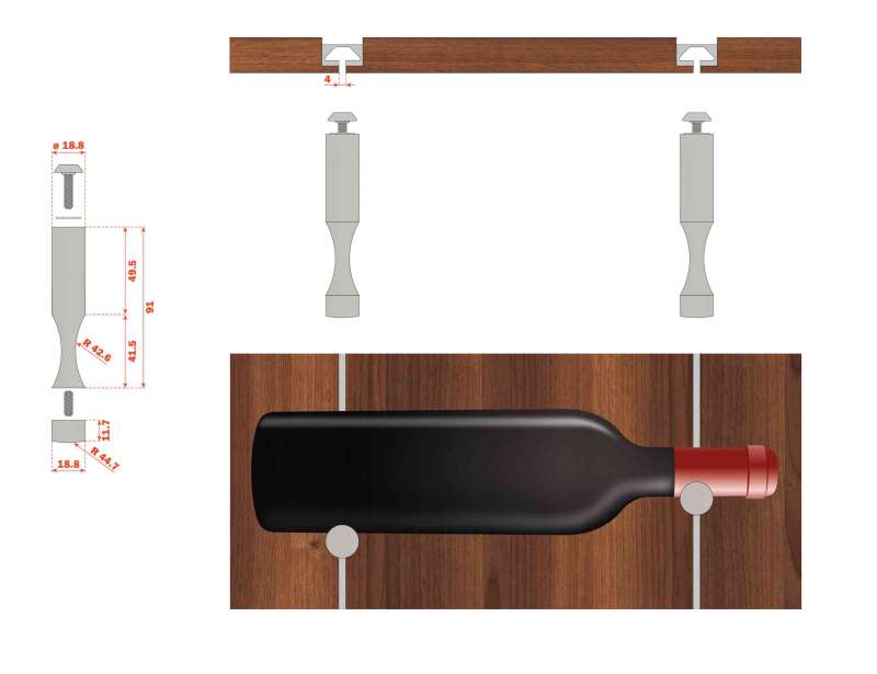Support pour bouteille à fixer sur le profil mural titanium ou aluminium PIN.
