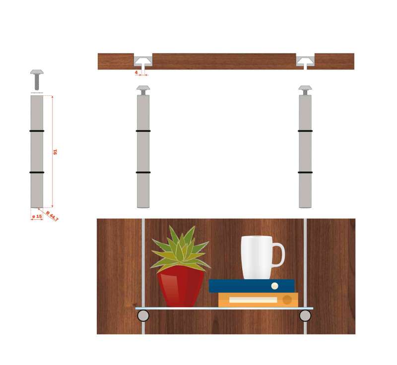 Supports pour étagères à fixer sur le profil mural titanium ou aluminium PIN.