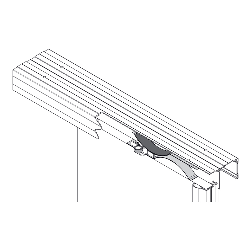 Se fixe sur le chant haut du panneau ou à l'intérieur du profil de guidage haut.
