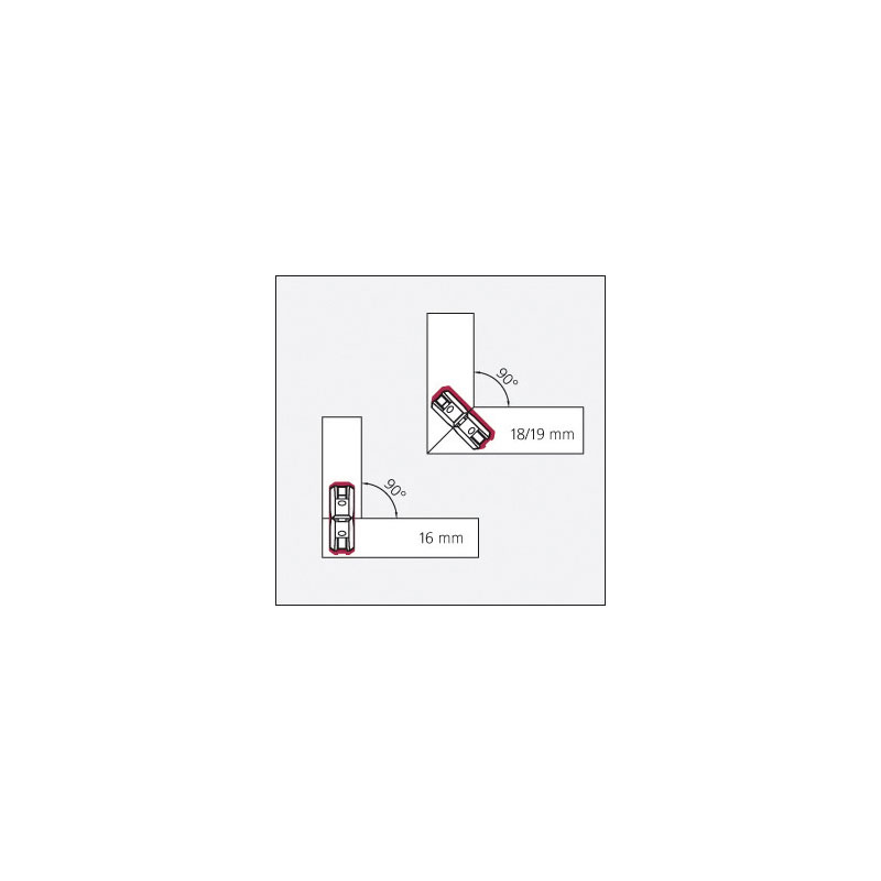 Elle est idéale pour les connexions de 90° avec des panneaux de 16 mm et des connexions en onglet de 45° avec des panneaux 18/19 mm.