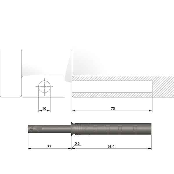 Utilisable avec façade équipée de tous types de charnières avec ressort (sauf charnières à ressort inversé).