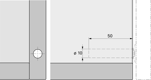 Jeu entre façade et caisson, pour un bon fonctionnement: mini 2 mm.