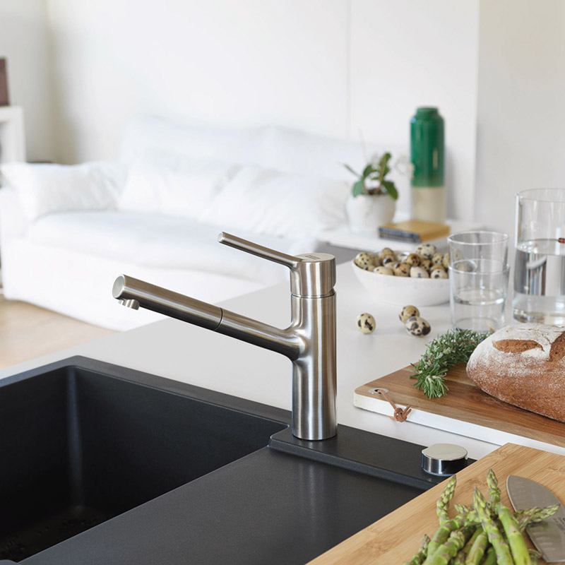 Mitigeur évier a bec orientable avec douchette de marque FRANKE