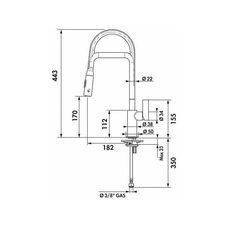 Corps Ø22mm avec bec orientable à 360°, et douchette amovible non extractible à 2 jets.