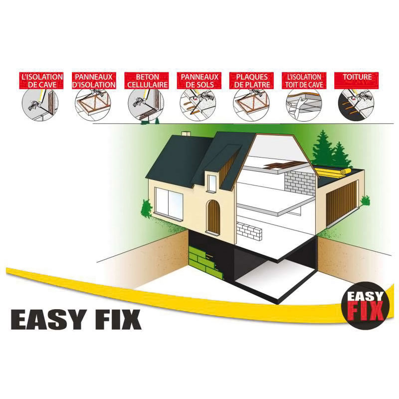 Idéale pour coller les panneaux d'isolation, les plaques de plâtre, le béton cellulaire et autres matériaux de construction pierre, béton, bois, maçonnerie, métal, matière synthétique comme PVC dur, polystyrène, mousse polyuréthane, polyester.