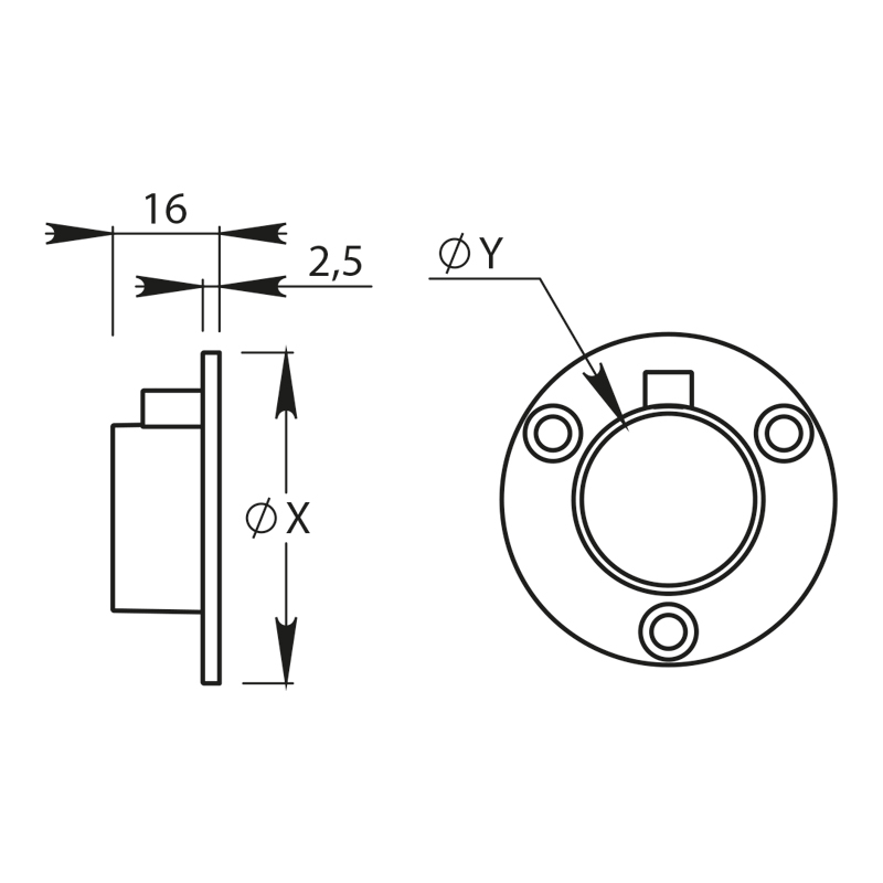 Naissance avec embase ronde à visser (3 trous) pour extrémités de tube de penderie rond.