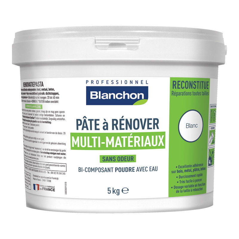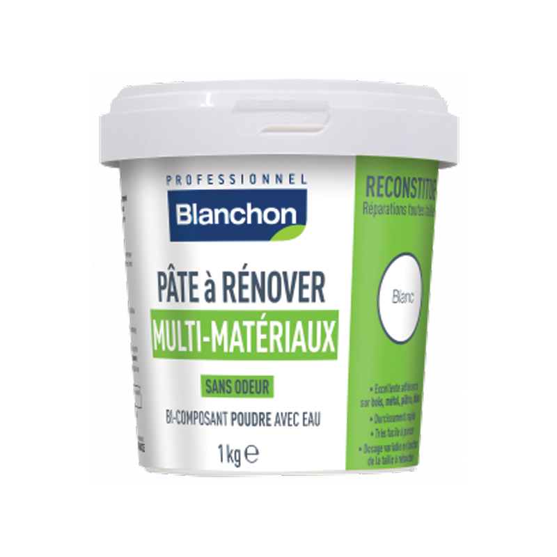 La pâte à rénover est un mastic en poudre à mélanger avec de l'eau pour effectuer des réparations de toutes tailles, sans retrait ni fissures.