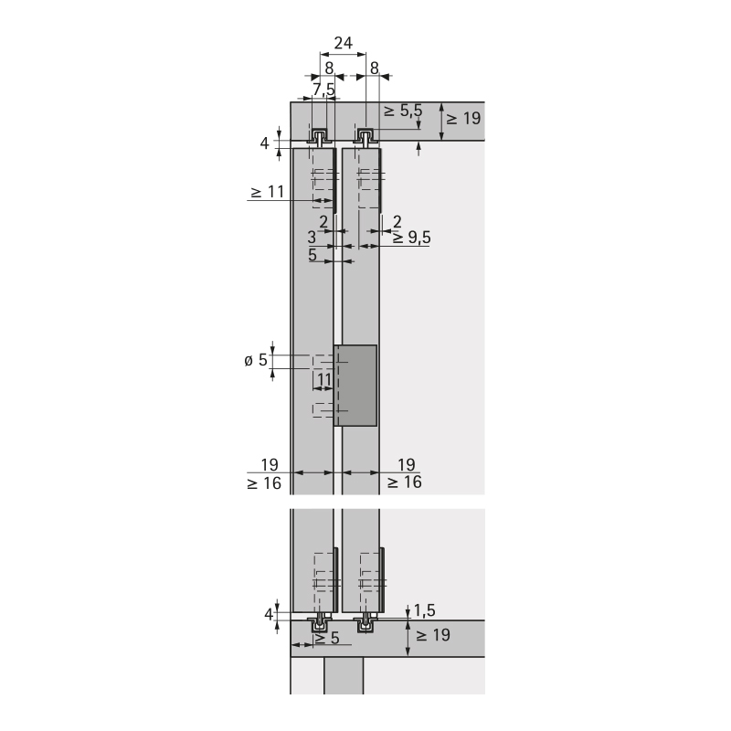 Pièce de guidage à visser pour armoires à 2 portes rentrantes SLIDE LINE 55 PLUS 22505 22505 HETTICH