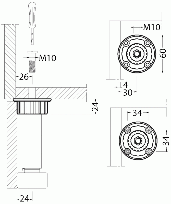 Pied de meuble ABS Ø 28 mm - Platine démontable 739 739 CAMAR