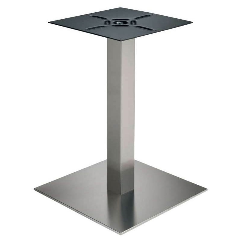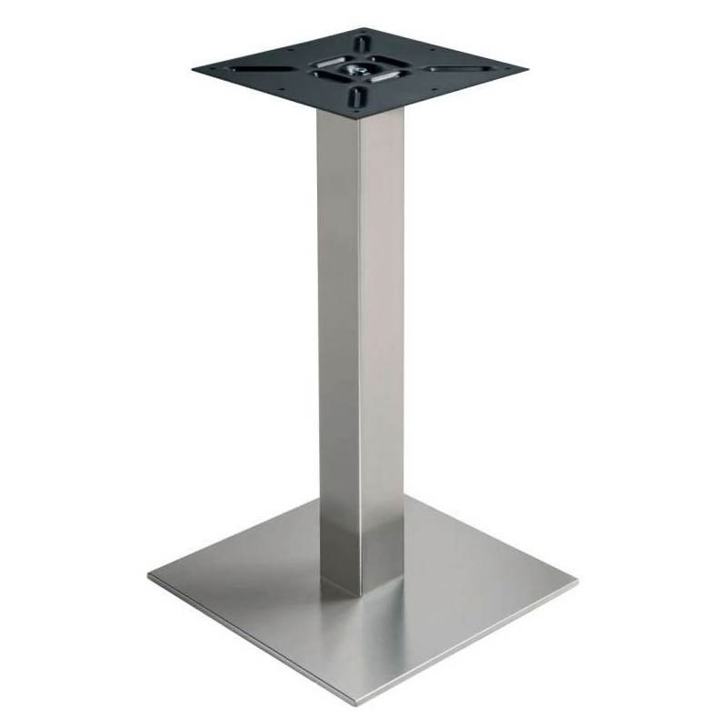 Ce pied central a une base carrée de 400 x 400 mm, un tube carré de 80 x 80 mm et une platine de fixation carrée de 300 x 300 mm.