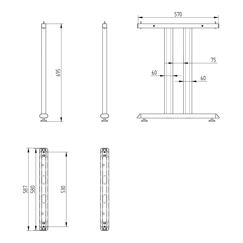 Piètement de bureau hauteur 695 mm 58499 58499 ITAR