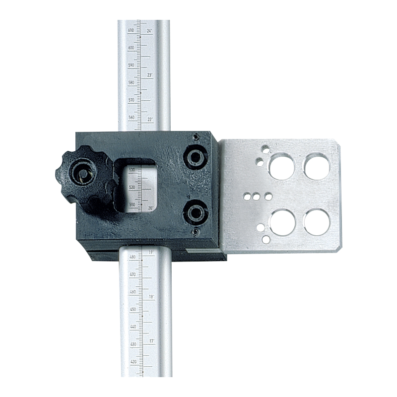 Plaque de perçage Accura pour charnières/embases avec poinçon de centrage et élément ajustable, aluminium/plastique.