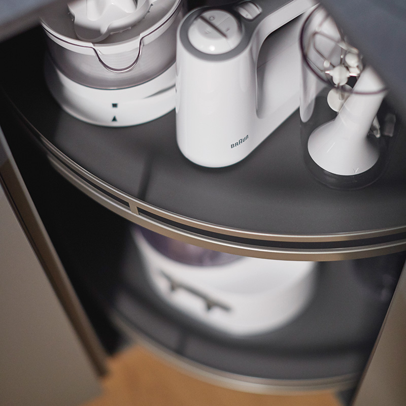 Rangez votre cuisine n'a jamais été aussi amusant avec les plateaux 3/4 rond Arena Style REVO 90 signés KESSEBOHMER.
