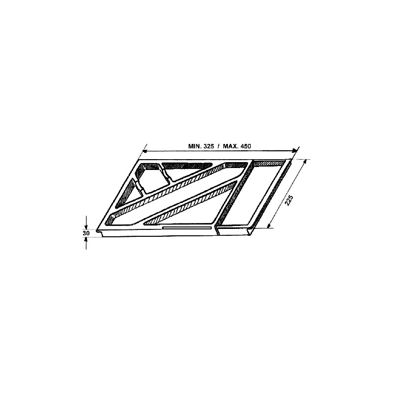 Il est fabriqué en PVC noir adaptable à des tiroirs de 295 à 415 mm.